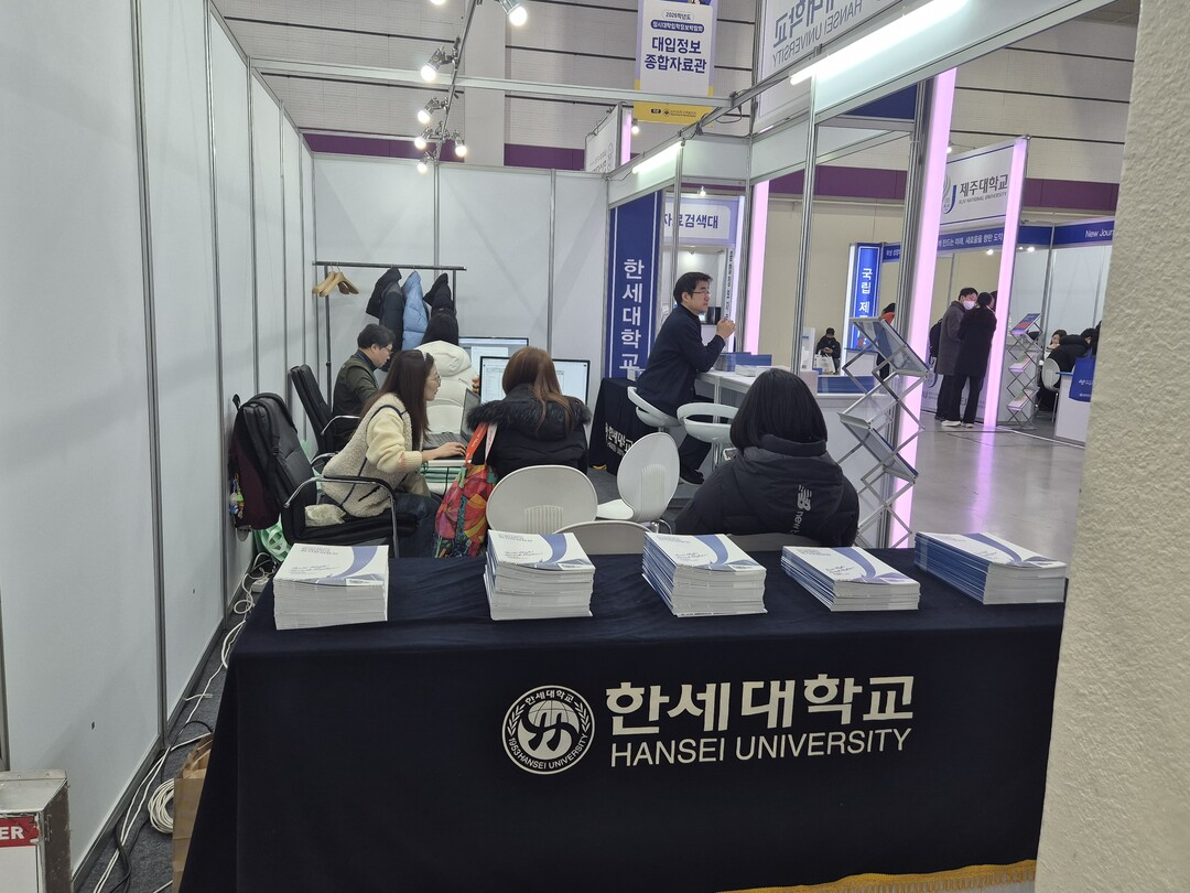 사진은 한세대학교 부스에서 입학 상담을 받고 있는 수험생들의 모습이다.