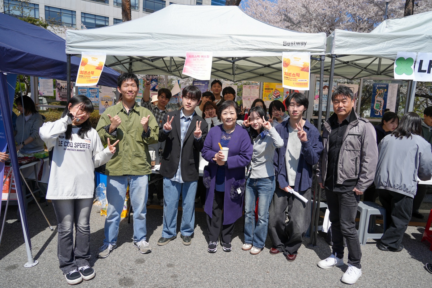 [사진 2] 치즈스틱 동아리 임원단과 함께한 백인자 총장과 조재혁 학생처장