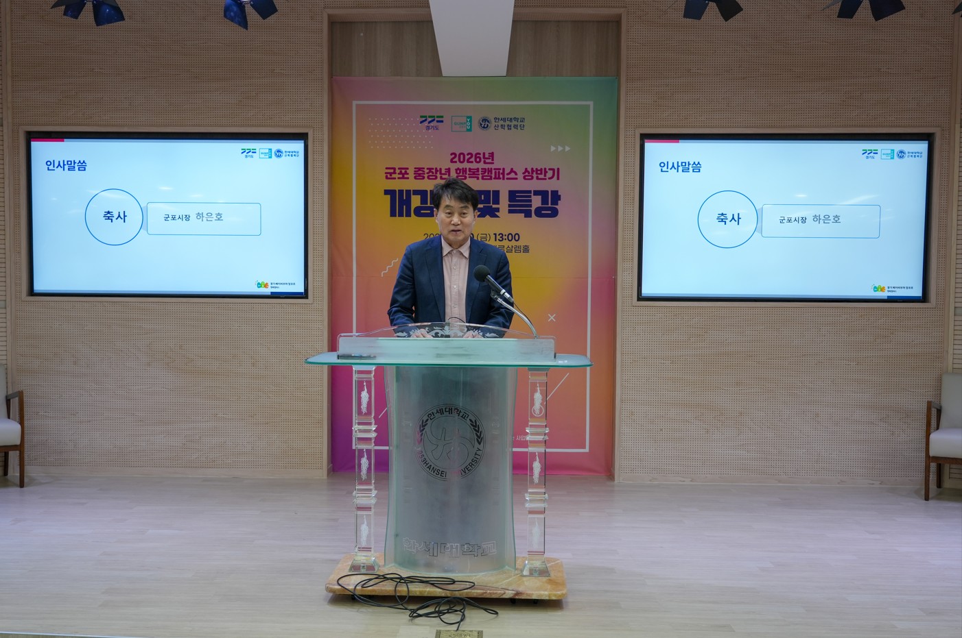 [사진 8] 2026년 상반기 개강식 행사에서 하은호 군포시장의 축사 1