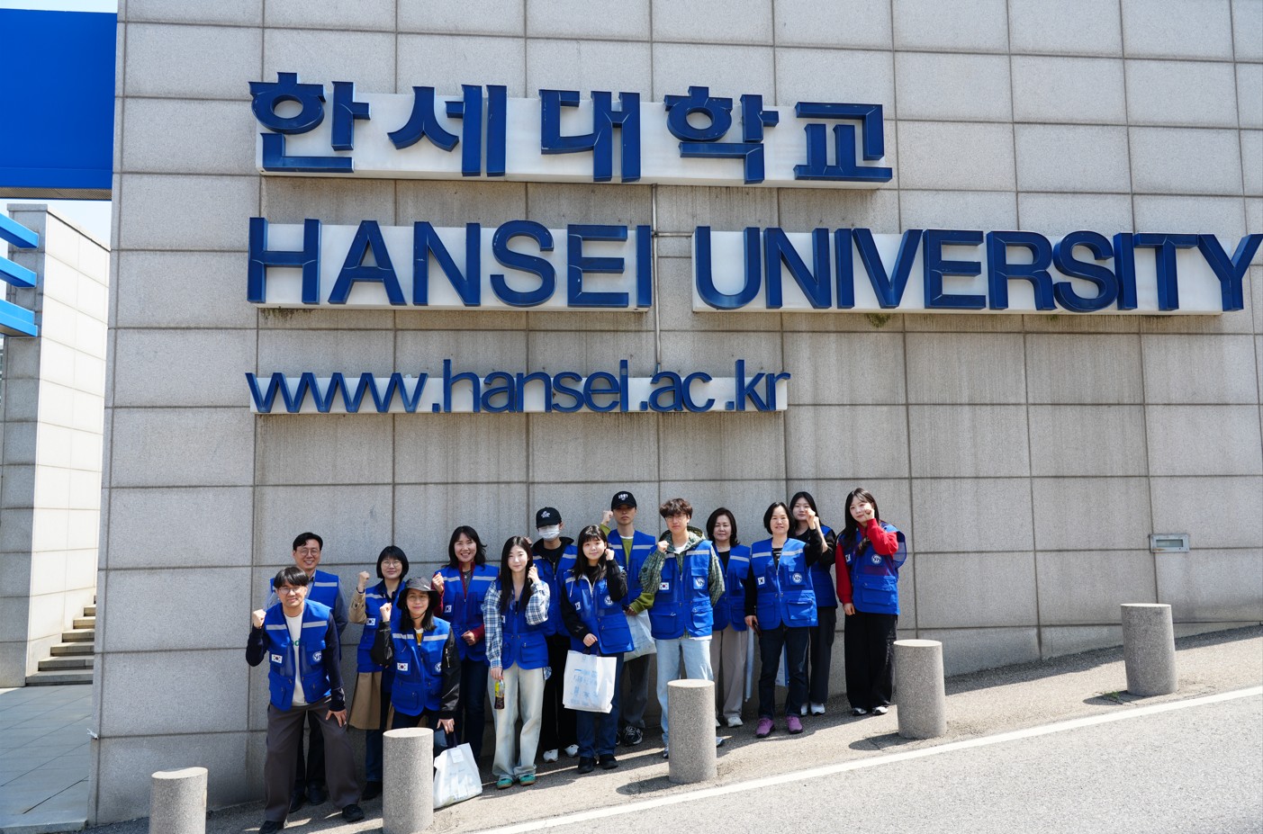 [사진 2] 한세대학교 정문 앞에서 자원봉사자들 기념사진